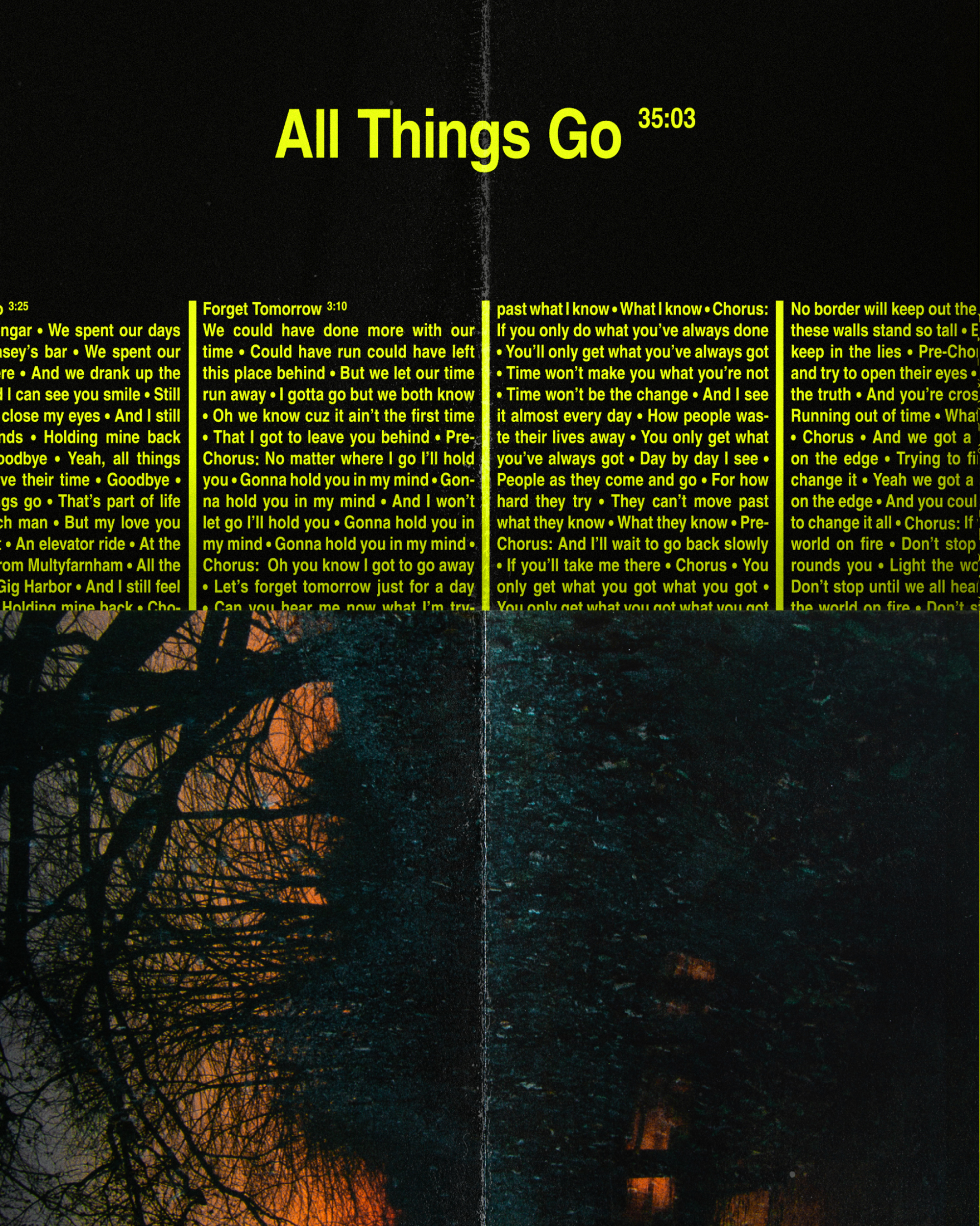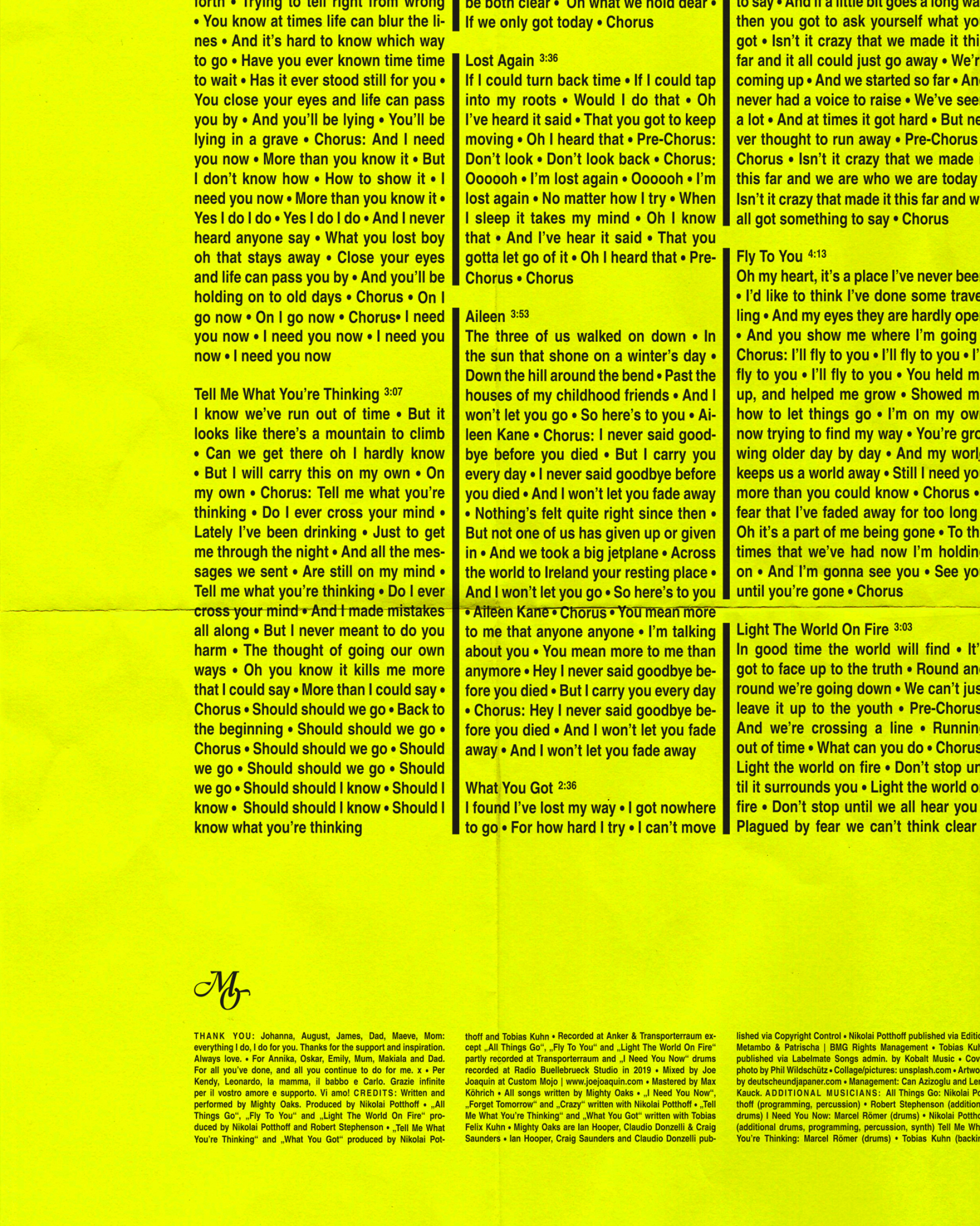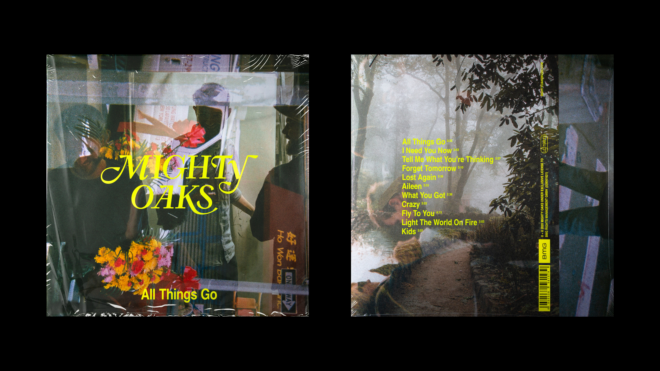 All Things Go is the third studio album from Mighty Oaks, a band deeply rooted in folk and indie music. The artwork reflects a new, more intimate layer in their sound through double-exposed imagery and analog moments that run throughout. A new logo captures the essence of their handmade music, strings and drums woven into every detail.