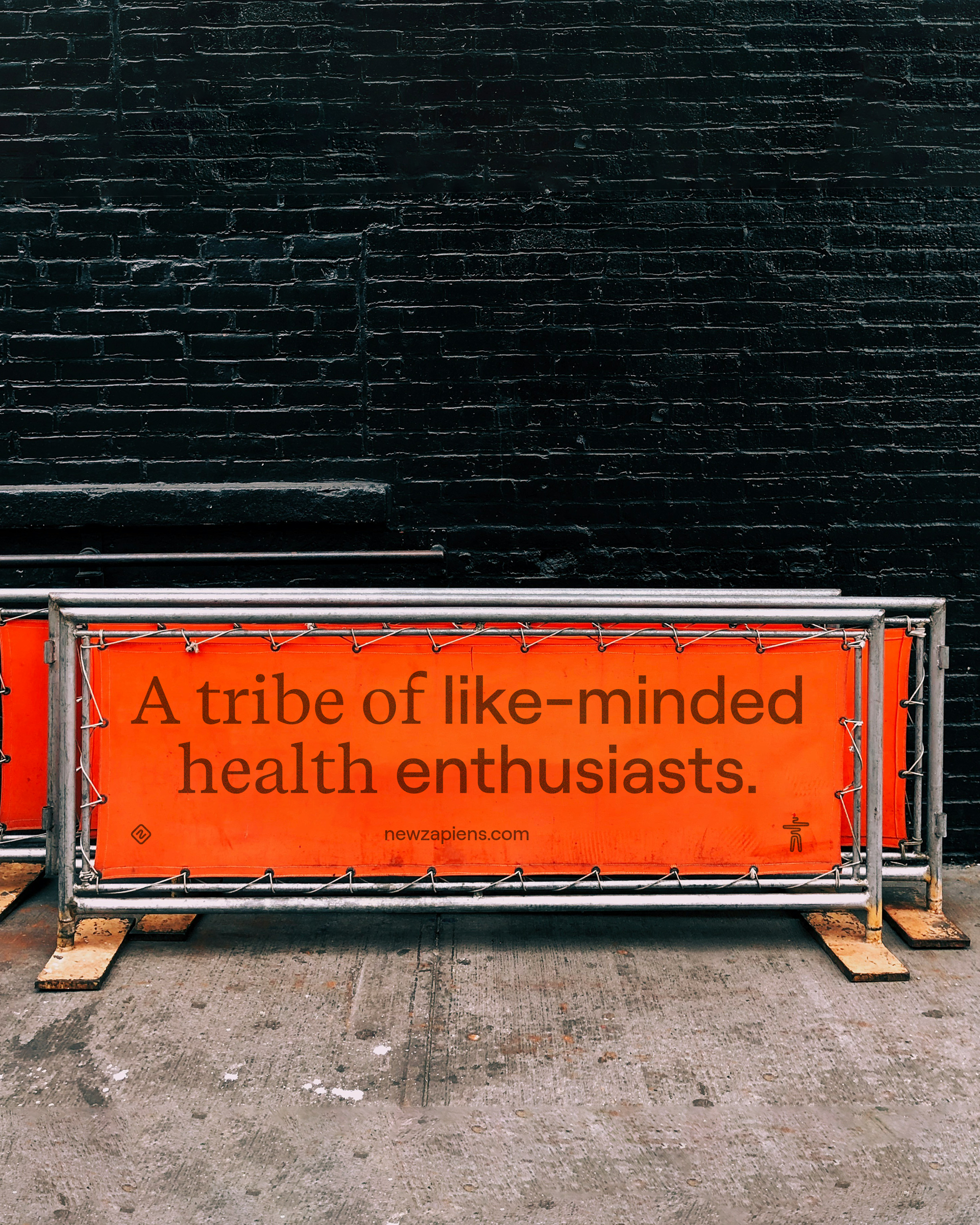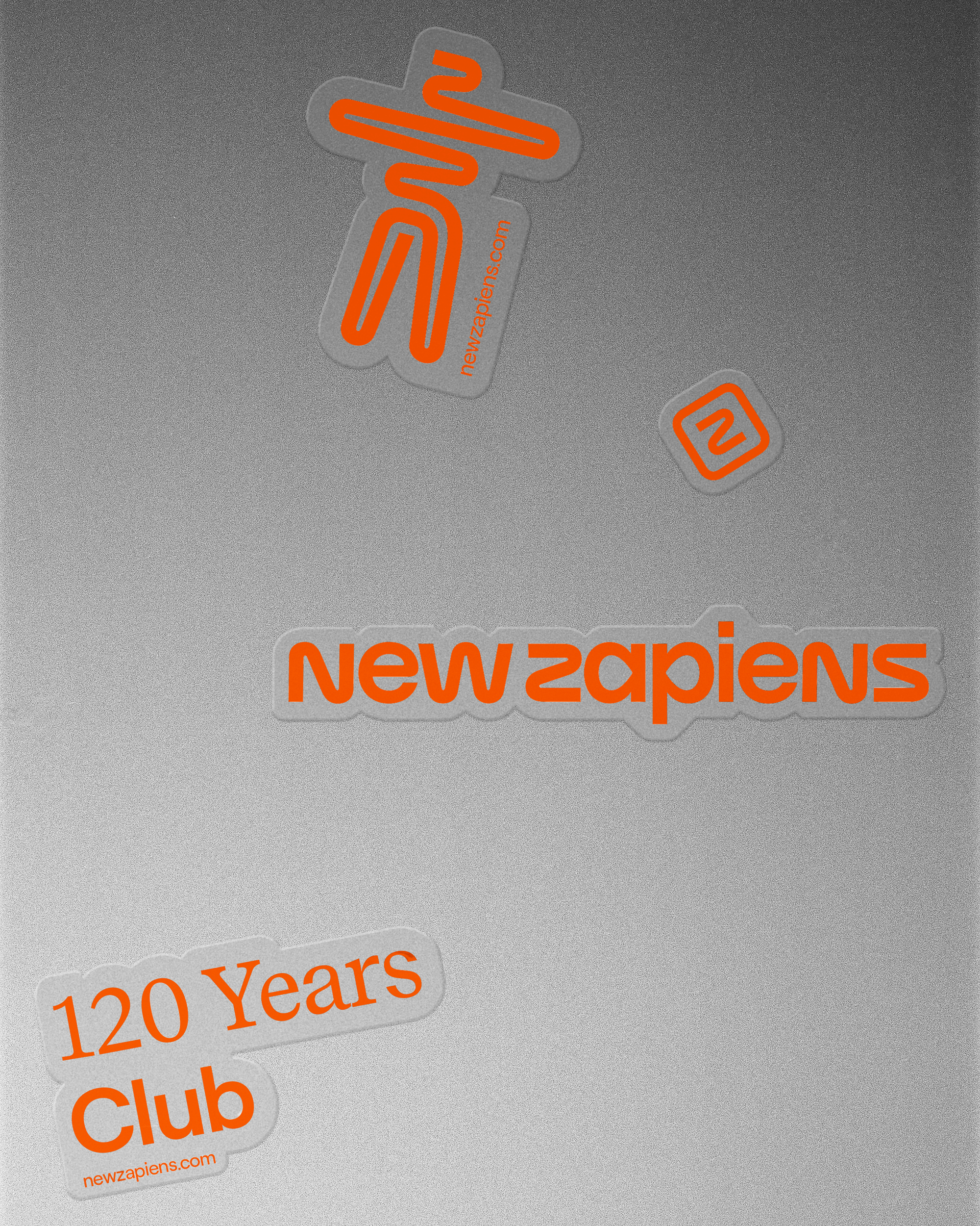 Visual Identity for New Zapiens, a platform for wellness, health, and longevity. The custom logotype is rooted in the idea of a lifeline: lowercase letterforms with soft curves and diagonals that feel approachable and human. The brand mark references the Vitruvian Human — a universal figure constructed from a single continuous line, connecting human potential with the length and quality of life.