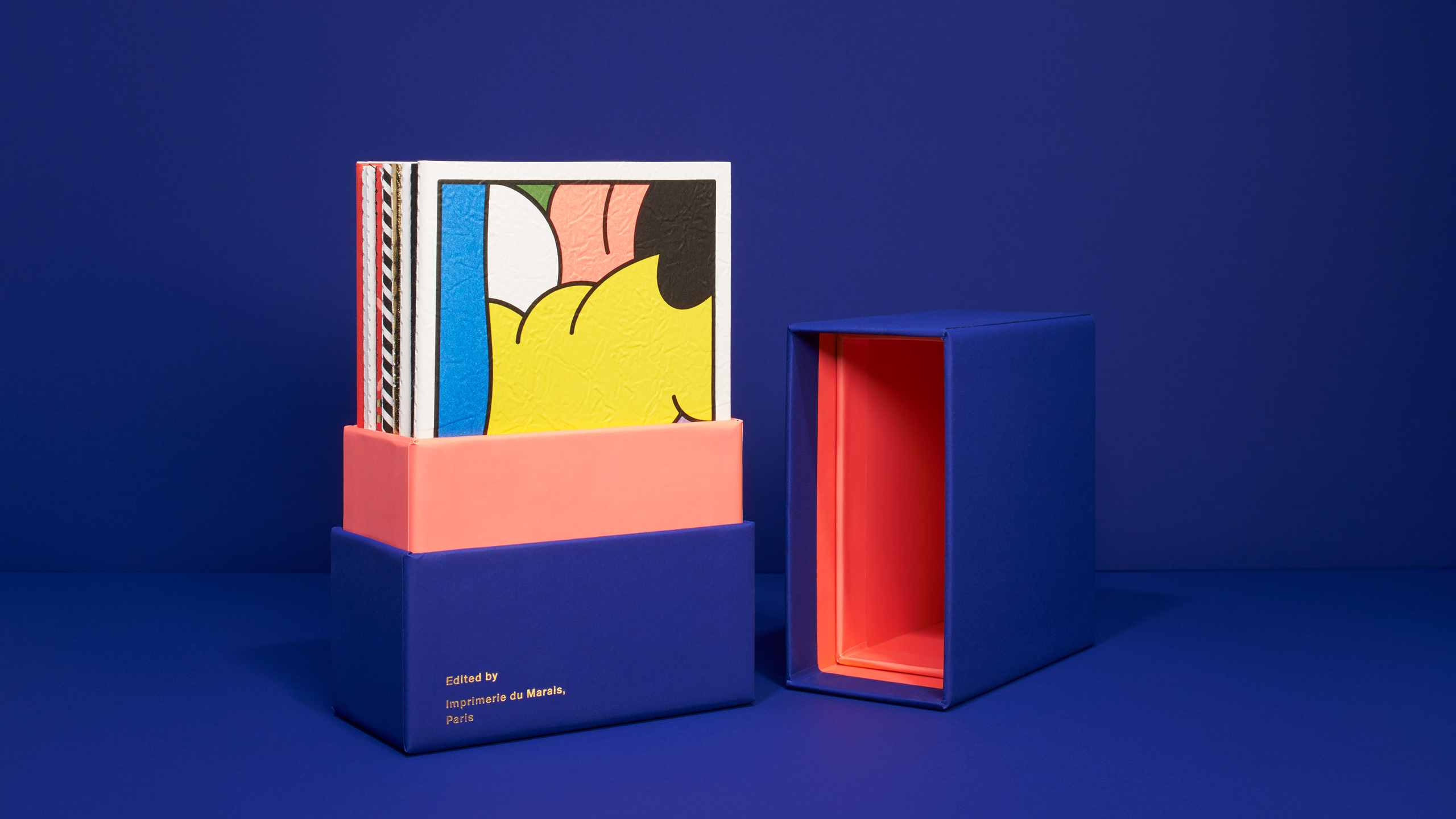 Packaging and art direction for the second edition of Imprimerie du Marais’s Notebook Project. The Paris-based printer invited Deutsche & Japaner to curate and design the edition, selecting a number of international designers. The concept is built around the unboxing experience: plain brown cardboard set against gold foil embossing and refined finishes.