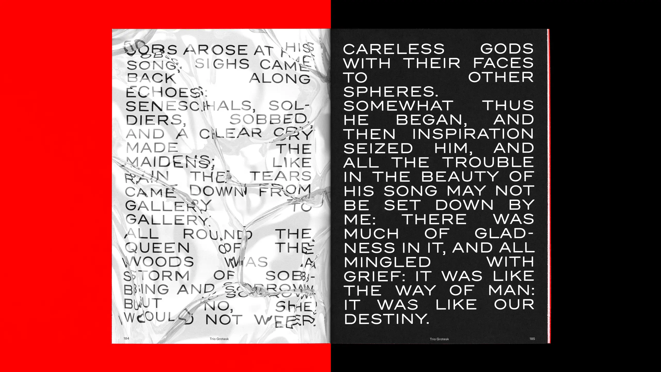 Merged Contours is a retrospective book by German-Finnish type foundry Schick Toikka, marking five years of typeface design. Nine designers, illustrators, and artists were invited to create personal interpretations of the foundry’s typefaces. Deutsche & Japaner developed both the concept and design of the book, and contributed the chapter dedicated to Trio Grotesk. The cover translates the title literally: text shifted across front, spine, and back until the boundaries of the book dissolve.