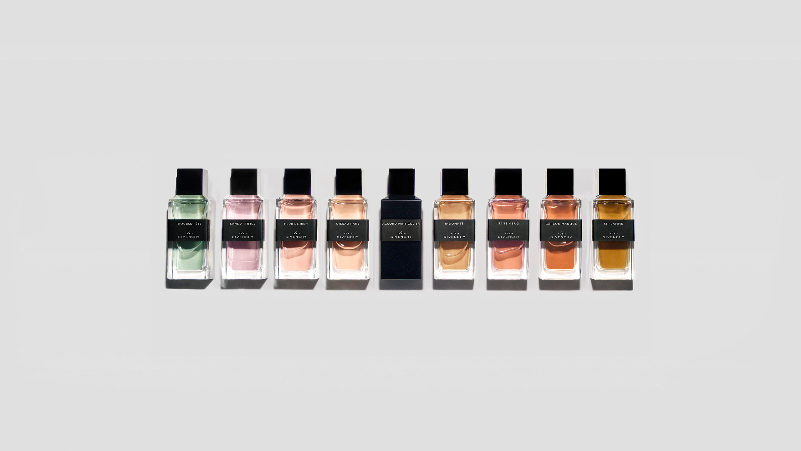 La collection particulière is a tribute to Monsieur Hubert de Givenchy and is composed of two elements: the black essence, which then blends with your chosen fragrance directly on your skin. The concept and packaging play with the gesture of combining.