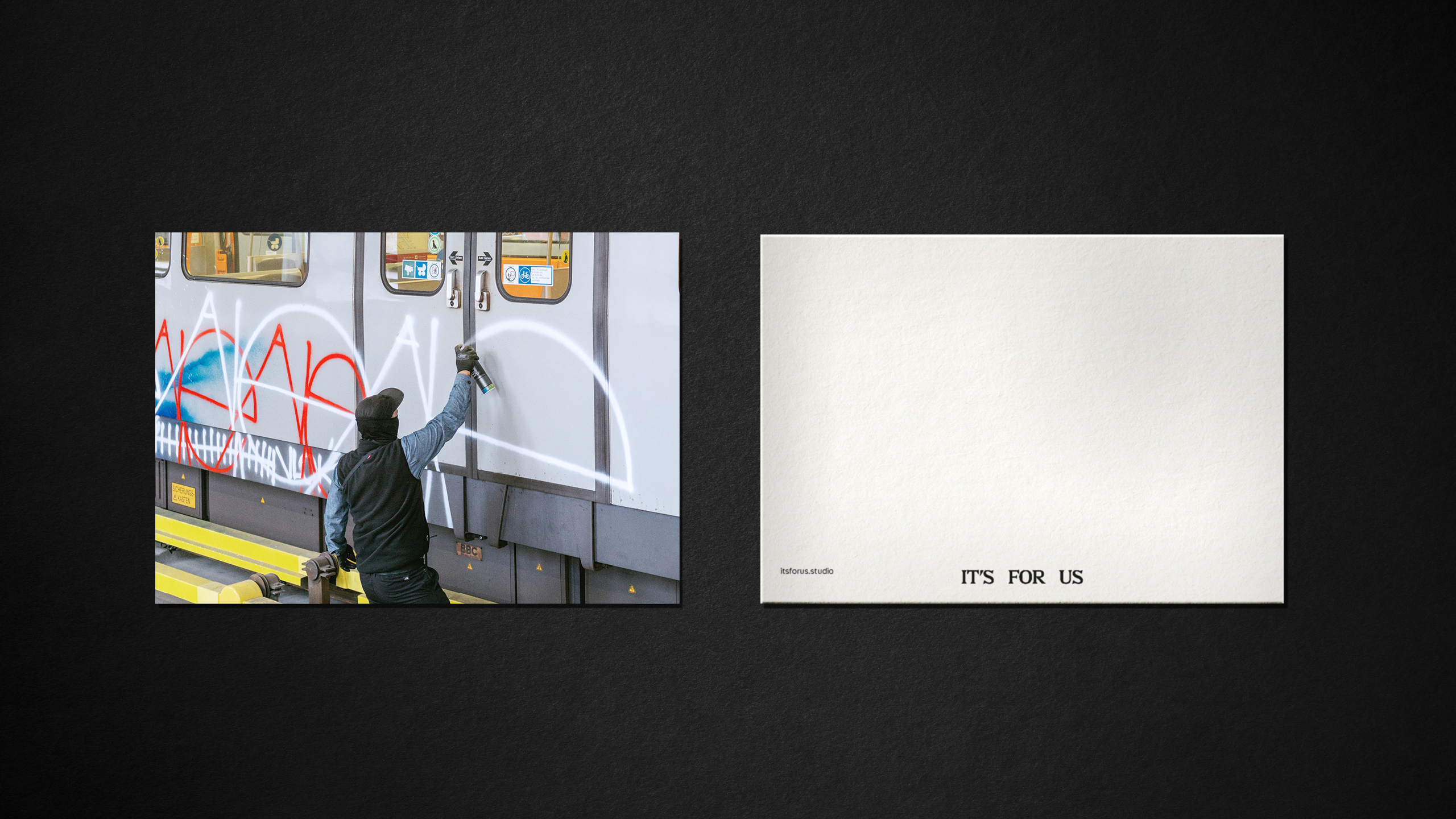 It’s for Us is a publisher dedicated to the culture of train writing. Being book lovers themselves, they set out to raise the bar for quality publishing in an emerging market, conserving an ephemeral culture. The Visual Identity includes an icon that references the square wrench used to unlock train doors.