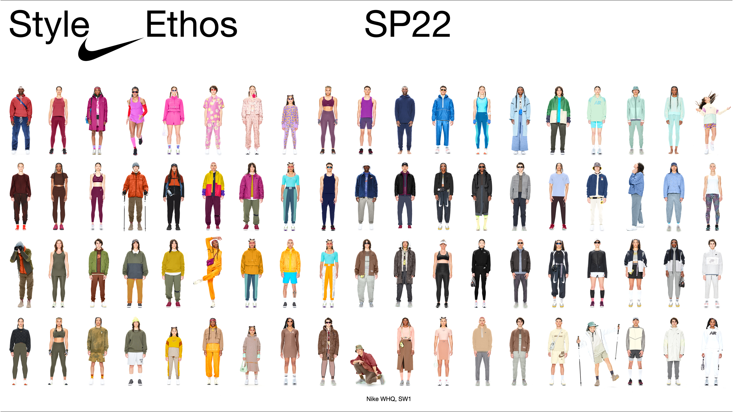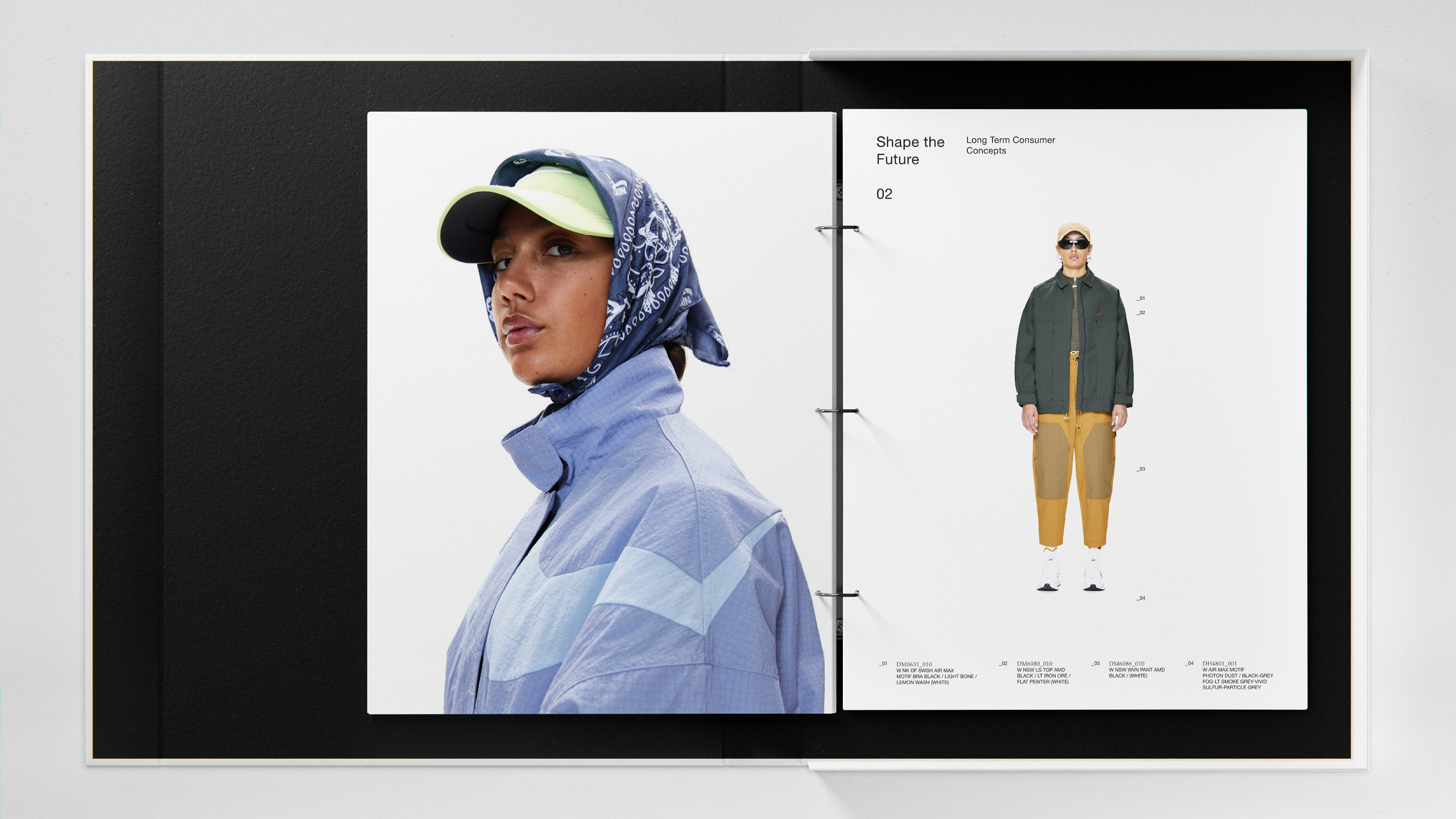 Visual Identity for Swoosh Style, Nike’s in-house styling department. The logo uses the Swoosh as a connector — visualizing how styling links individual pieces, references, and cultures into a whole. This idea carries through into text: an underscore serves as the connecting element across typography and small sizes. An understated, utilitarian identity that adapts across all scales without competing with the work it frames. The flexible system covers logo design, layout, guidelines, and interior and packaging concepts.