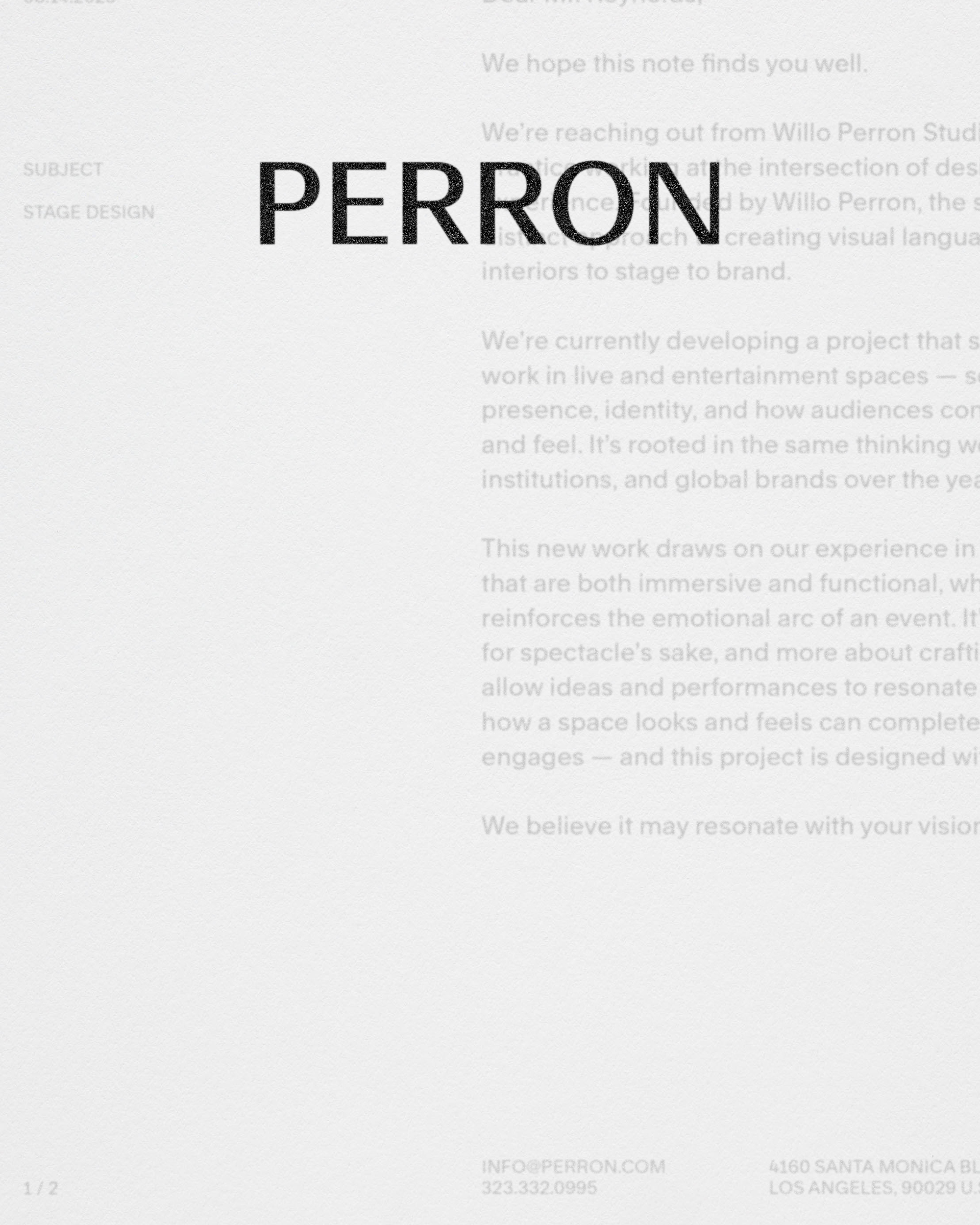 Perron Studios is the Los Angeles-based design studio of multidisciplinary designer and creative director Willo Perron, creating some of the most iconic stages of our time — from Rihanna’s Super Bowl halftime show to Beyoncé’s Cowboy Carter tour. We created a symbol that reflects Willo Perron’s origin xxx