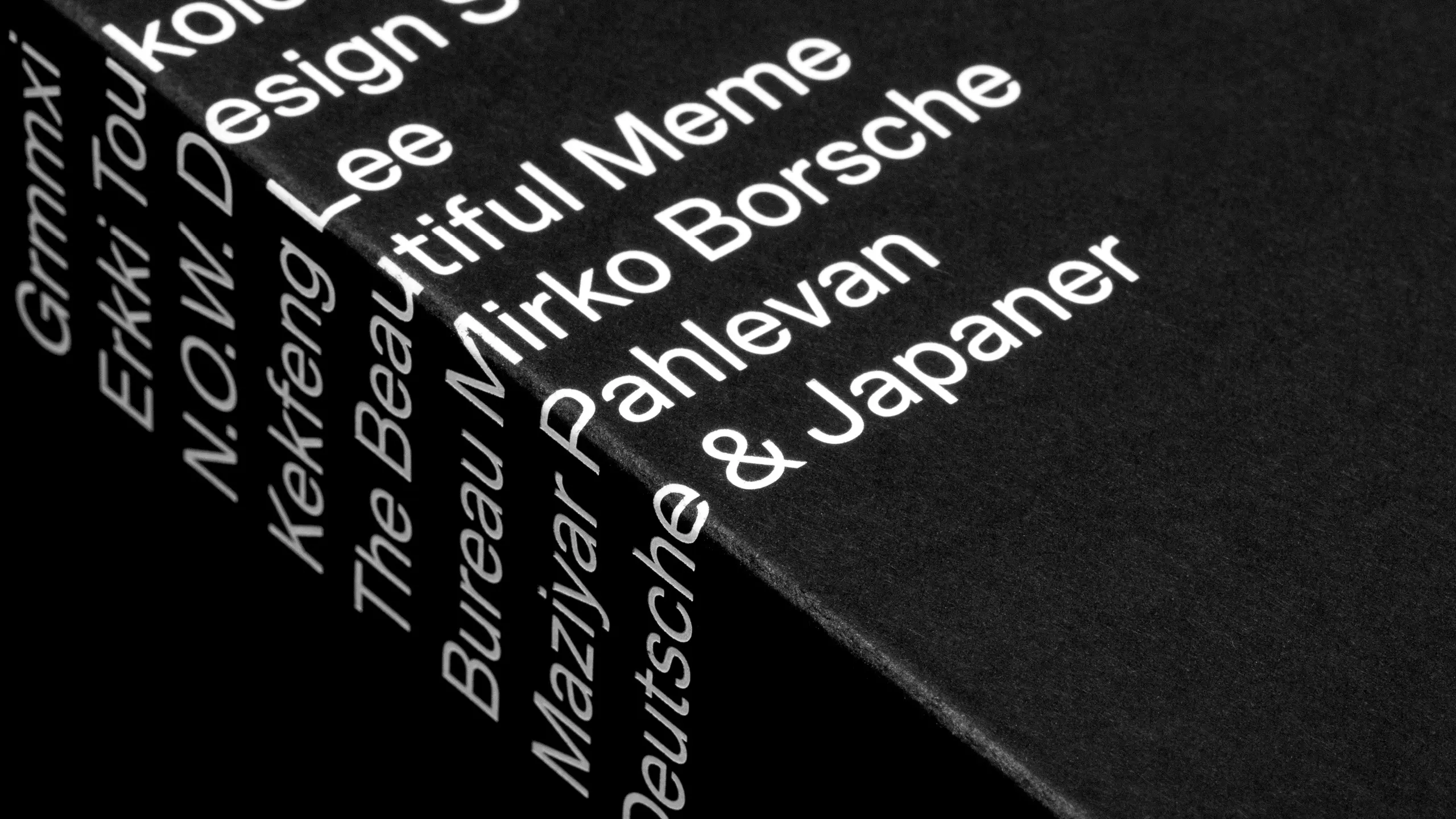 Merged Contours is a retrospective book by German-Finnish type foundry Schick Toikka, marking five years of typeface design. Nine designers, illustrators, and artists were invited to create personal interpretations of the foundry’s typefaces. Deutsche & Japaner developed both the concept and design of the book, and contributed the chapter dedicated to Trio Grotesk. The cover translates the title literally: text shifted across front, spine, and back until the boundaries of the book dissolve.