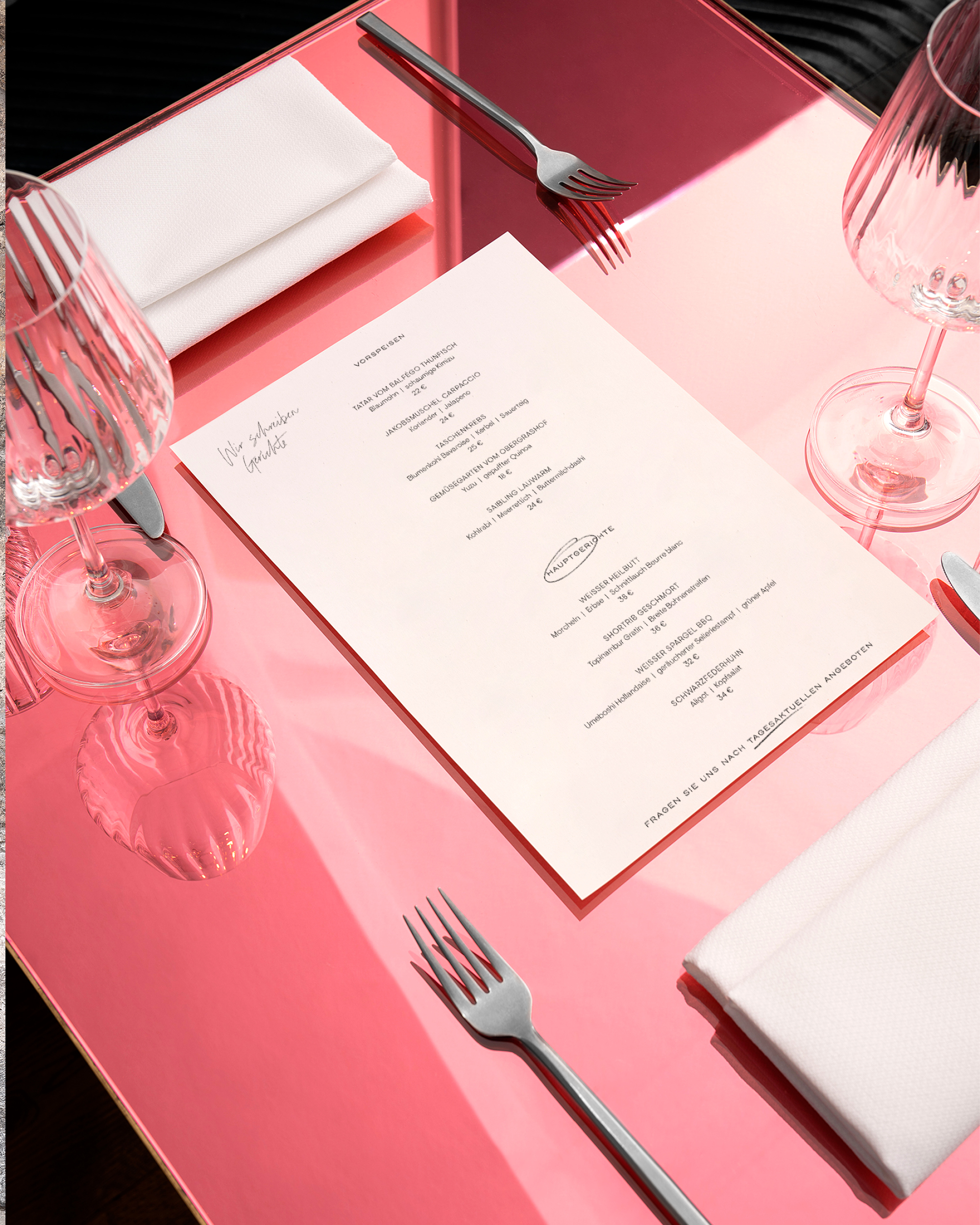 Located in the former Stadtschreiberei, one of Munich’s oldest townhouses (built in 1552), Schreiberei is a new brasserie concept serving delicacies on three different floors. The Visual Identity is a playful blend of classic brasserie codes, architectural and historical references and a contemporary, exuberant look.