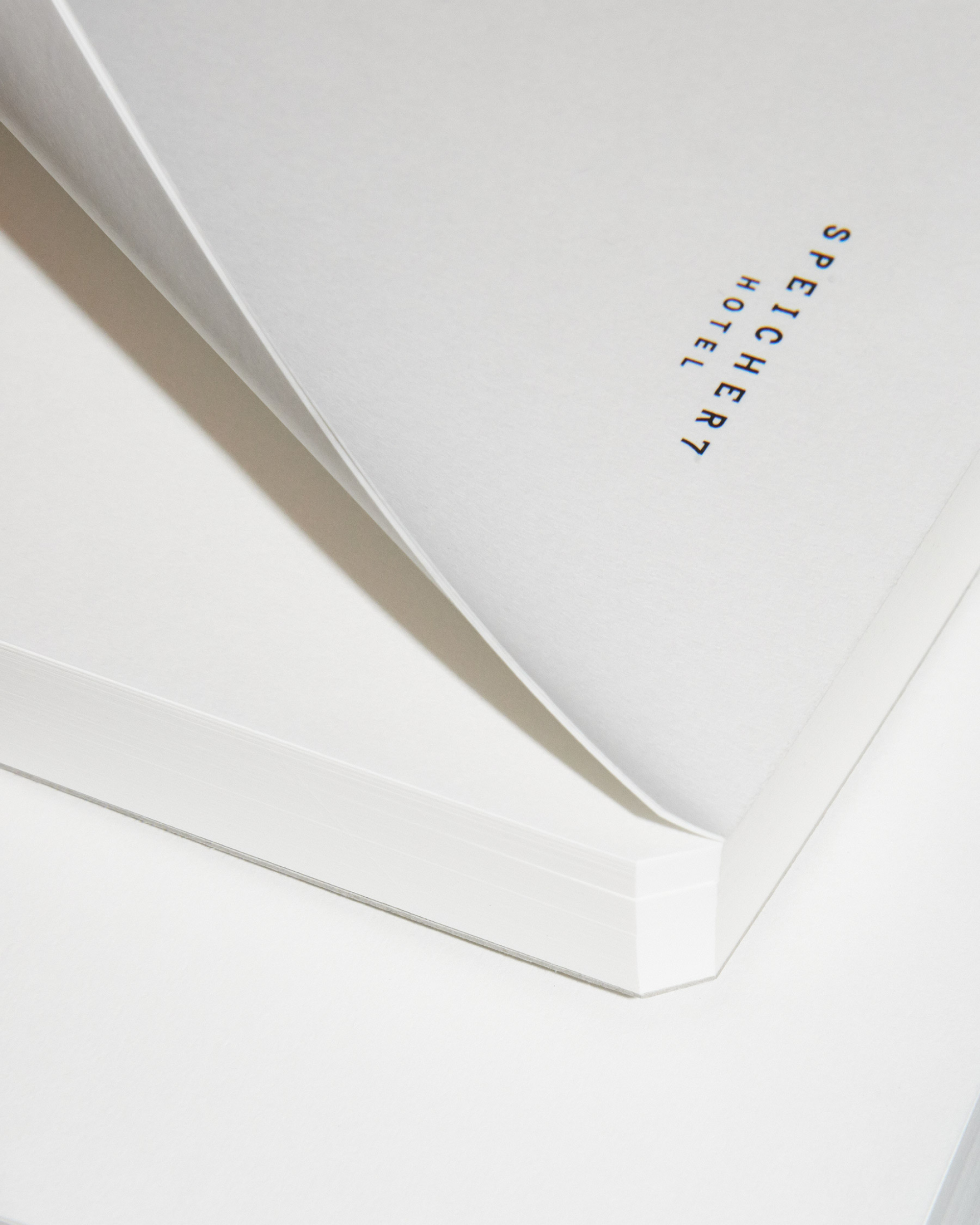 Visual Identity for Speicher7, a hotel housed in a listed warehouse building in the port area of Mannheim, dating back to the 1950s. The identity preserves the spirit and character of the building, drawing directly from its architecture. The chamfered edges of its structural columns become a recurring design element, running through a variety of media.